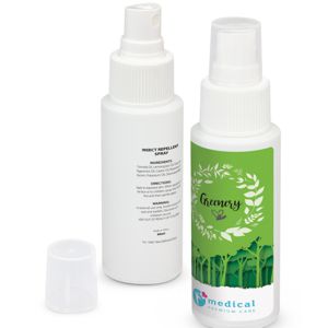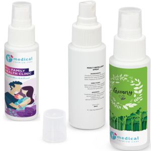 Keep the bugs at bay with this handy 60ml spray bottle of insect repellent. It contains citronella oil which is a natural insect repellent and has a non-aerosol pump which is more environmentally friendly. The ingredients label is on the back of the bottle and leaves plenty of room for branding. Made from citronella oil, lemongrass oil, peppermint oil, castor oil, glycerin, potassium oil, rosemary oil, water. Decoration is by full colour digital label. Minimum order: 100 Lead time: 2 weeks