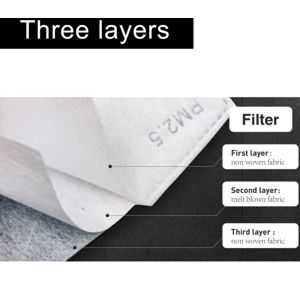 This PM 2.5 filter can be used with reusable masks, by simply inserting it into the opening on the side of the mask. The filter has 3 layers, the inner meltblown fabric can filter fine dust or particles, which makes safe to use, also fresh and breathable. Each filter is stamped with the mark PM2.5 which stands for Particulate Matter 2.5 microns, it will filter particles as small as 2.5 microns in size. PLEASE NOTE >- Filters should be replaced in the mask regularly. Filters are packaged into cello bags containing 10 filters, so an order for 100 filters equals 10 bags x 10 filters, 250 filters is 25 bags x 10 filters, 500 filters is 50 bags x 10 filters, 1000 filters is 100 bags x 10 filters. *There is no branding available for this product. Minimum order: 100 filters (10 bags) Lead time: 1 - 2 weeks