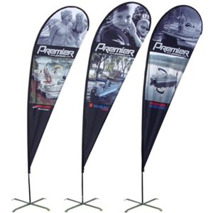 Let your branding fly high with our new range of advertising banners. The Teardrop flag or Teardrop banner and often referred to as a beach flag, wing banner or outdoor flag. Years after being invented and since the introduction of other styles, the teardrop is still the most popular promotional flag in Australia and still recognised as the best outdoor marketing tool for promoting a brand, launching a product, promoting an event or promotion. Teardrop Flags are best used when promoting a logo, a brand, a slogan, an event or a single/double word promotion. It is cleverly designed to push the brand at the top of the flag and reduce weathering /fraying, keeping your advertising out there for longer.